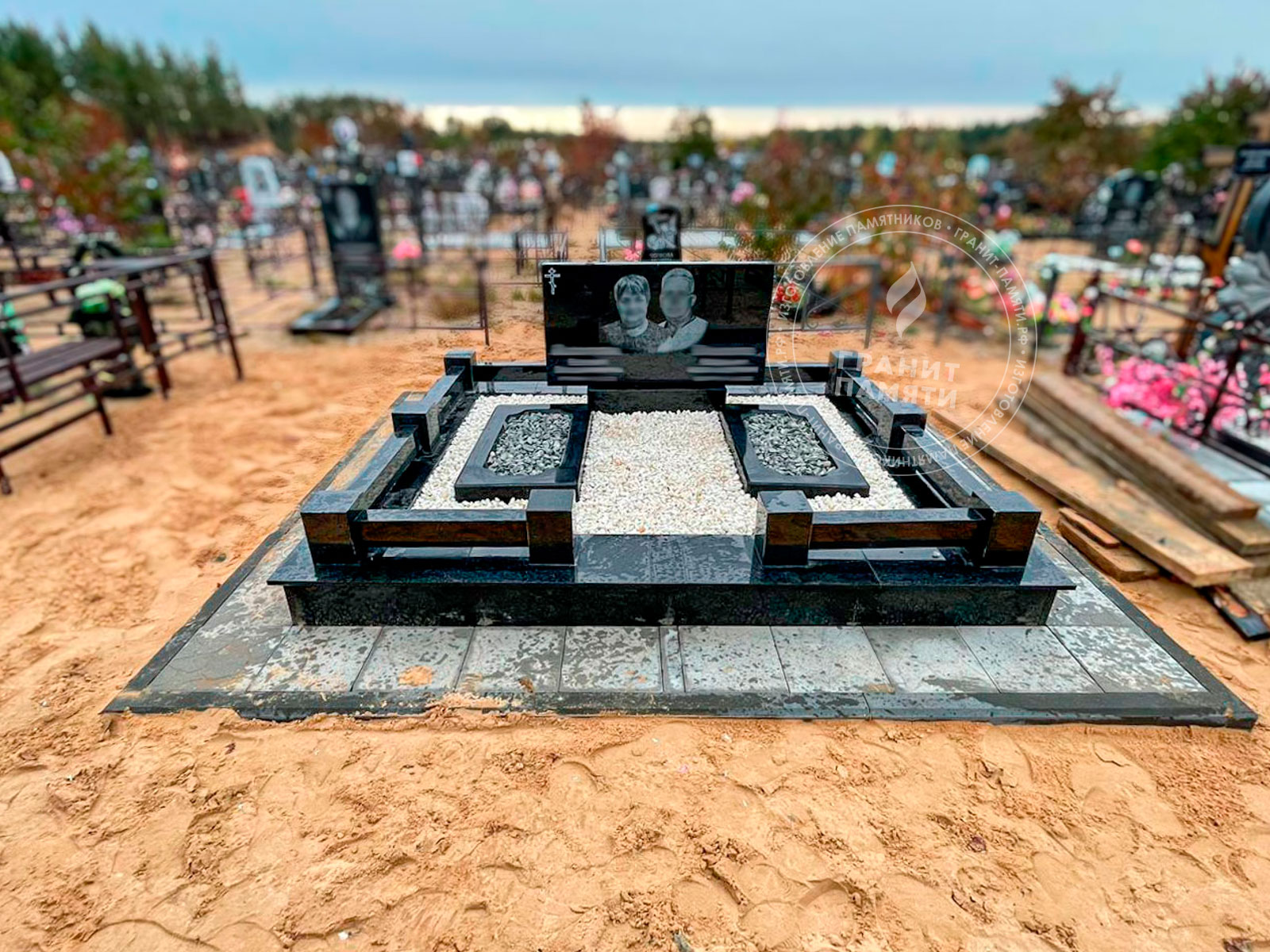 / Двойной гранитный памятник, прямой